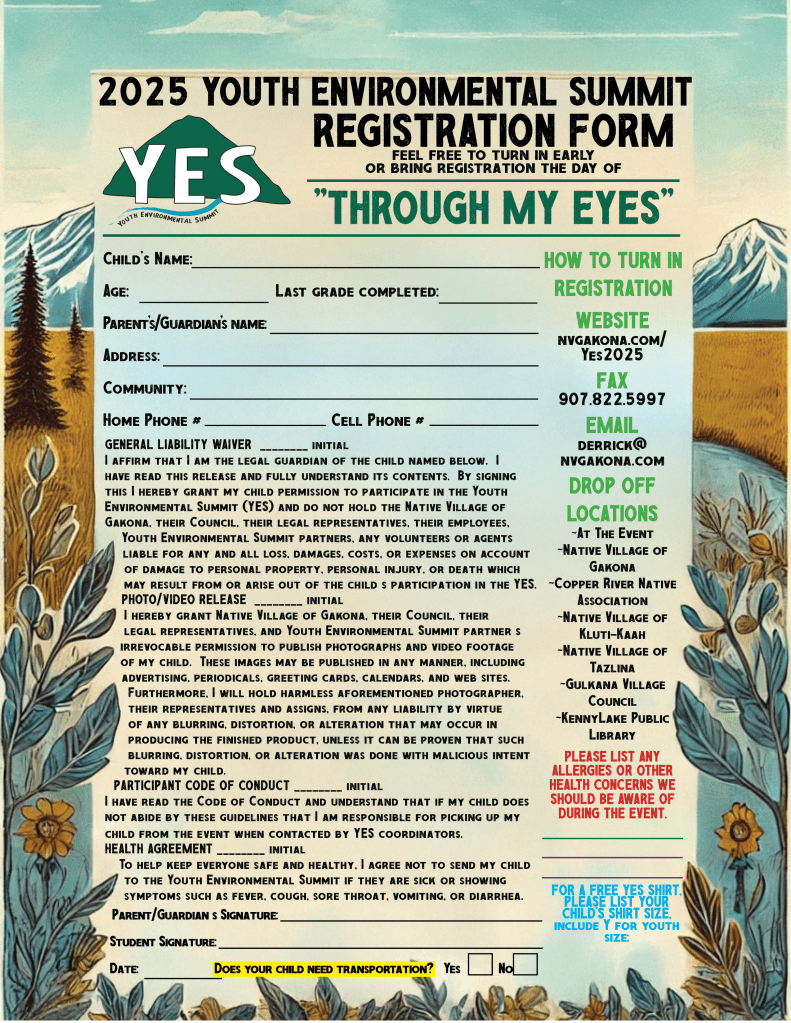 Join us for the 2025 Youth Environmental Summit (YES)! Below you will see the flyer for this year’s YES.